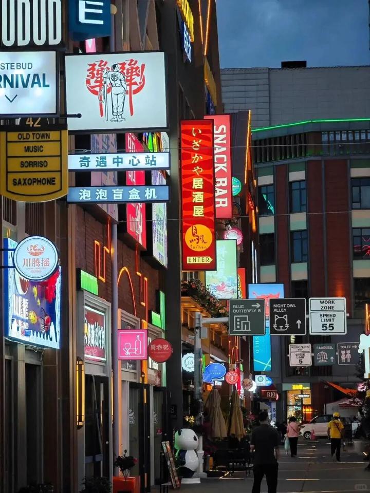 此外,淮海街的特色景观也极具吸引力,街道两侧悬挂着大量日式灯笼,夜晚亮起时,柔和灯光洒满路面,营造出温馨浪漫的氛围,搭配霓虹灯牌、日式门头与多层次景观灯光设计,夜晚的街区宛如一场小型灯光秀,绚烂夺目。许多游客会选择身穿和服在此拍照,独特的日式场景与灯光效果,让这里成为兼具视觉美感与体验感的拍照胜地,进一步强化了其“日式风情打卡地”的定位。