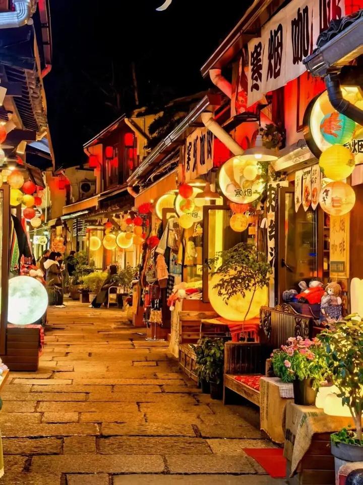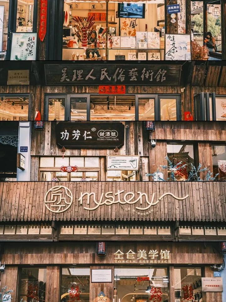 “小河直街历史文化街区”则主打“原生态水乡市井生活”,街区沿小河而建,保留了“前店后宅”“下店上宅”的传统水乡建筑格局,商业业态更贴近“日常消费与慢生活”,聚集了特色咖啡馆、小众书店、手作甜品店、精品民宿,还有售卖新鲜河鲜的小餐馆,傍晚时分,河埠头旁的灯光亮起,尽显“小桥流水人家”的静谧氛围。