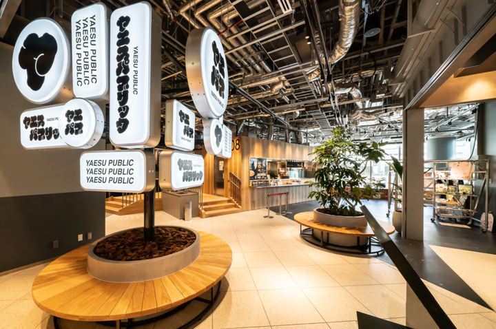 Yaesu Public的标识字体采用江户时代百姓文化中常用的图案文字“江户文字”,同时缩小文字间距,紧凑的布局也象征着空间内不同内容的关联与融合。