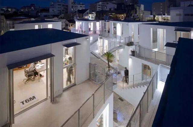 六栋看似分开的独立建筑体,根据承租者可能需要的空间大小,在每层进行微妙的不同不均质特色的空间打造,让看似分离的建筑物其实相互连结互通、上下左右关系产生出奇特的空间感。