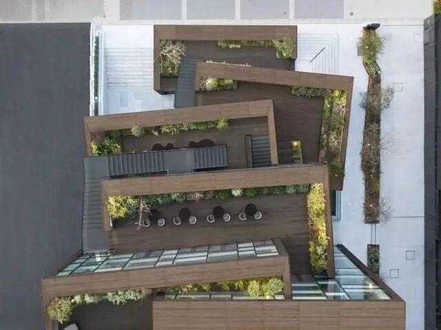 每个盒状结构的屋顶都作为上一层的露台,室外楼梯连接不同的区域,为人们提供了通向不用楼层的附加通道和进一步探索建筑场地与区域的机会。