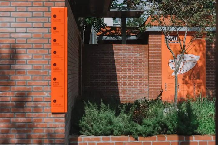以朝阳的橙色作为乐山新的标志色,将一系列带有时尚感的标识符号植入街道。统一的街区VI与橙色标识设计构成了街道上连续的视觉线索。