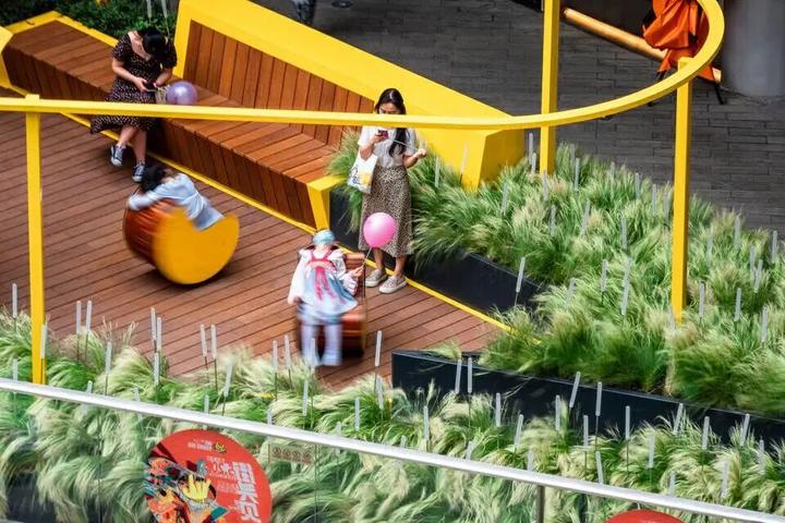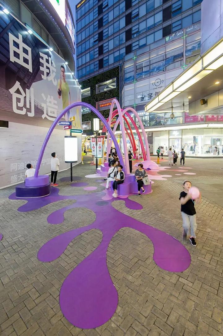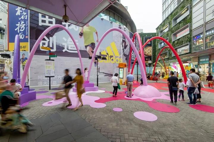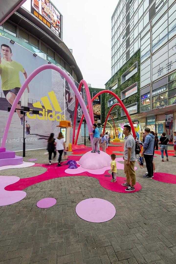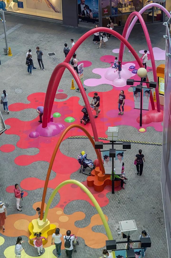 这座色彩的乐园成为了露天商业街内最受欢迎的空间,不仅使大人和孩子们有了聚集游玩的空间,也使得商业街的人流量得到了增长。
