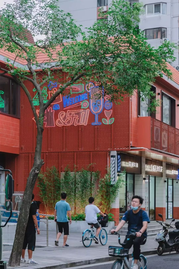 成都玉林路商业街是一条改造成功的商业老街,一方面要保证街区的商业性,另一方面还保证街区生活一体化发展,所以整条街上不仅有餐饮店,也有眼镜店、菜市场、照相馆,甚至是国际化品牌的入驻,烟火气十足。