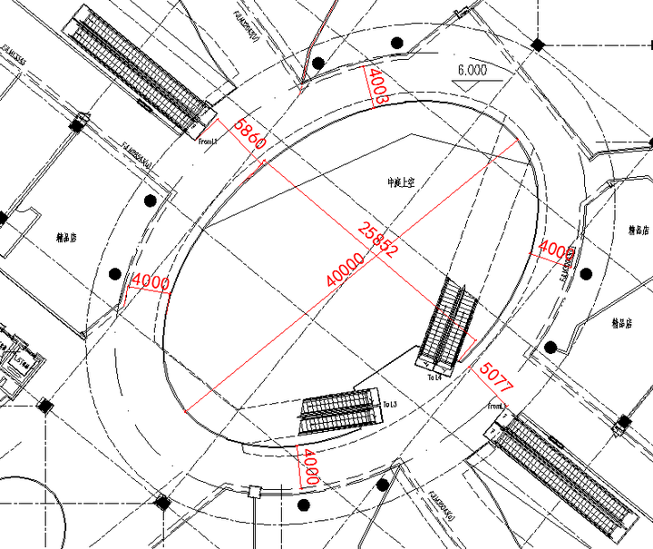 a.自动扶梯:一般距主入口20m~30m左右设第一组扶梯,扶梯运行方向宜与人流动方向一致,间距宜控制在 60m~80m,服务半径不宜超过50m,设置方式有『上下成组』或『上下分开』。