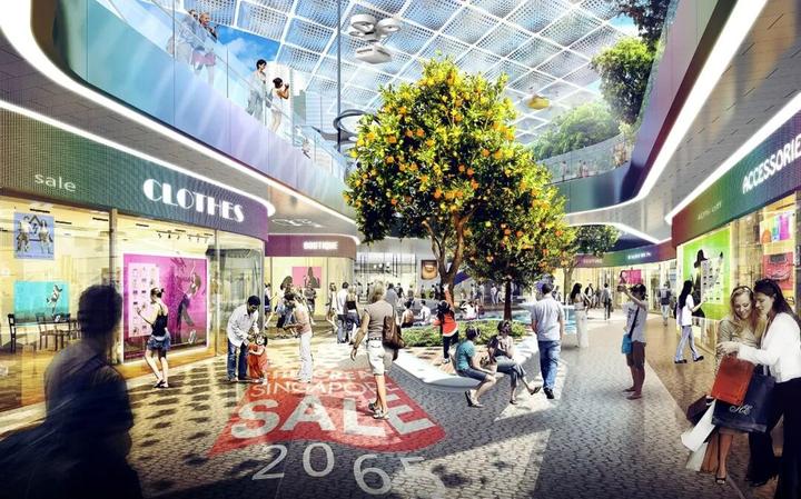 2065年的乌节路是一条梯田式的开放步行街,之前令人混乱如迷宫般的地下通道、楼梯和自动扶梯将消失,通过一条由活动广场组成、露天的、环境冷却型的购物街,与现有相邻购物中心的地下层相连,将主要商场连接在一起。