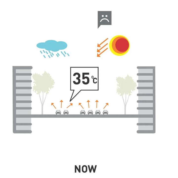 概念图:工程技术营造室外舒适度改造前 ©SPARK