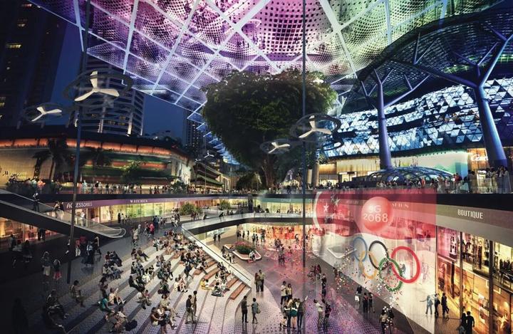 2065年乌节路的上层平台可提供50,000平方米商业空间,是连接步行地面和下层平台新店铺的主要楼层,与现有乌节路两侧商业的地下空间连通,从而形成一个新的购物商业网络。