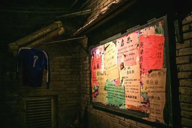 再往前走,胡同里晾衣绳上挂着两三件衣服,墙根儿底下晾晒着的白球鞋,拐角处下了一半的象棋、小马扎,墙上贴着居委会通知书、警示语、宣传标语,还原了最朴实无华的老北京市井生活。