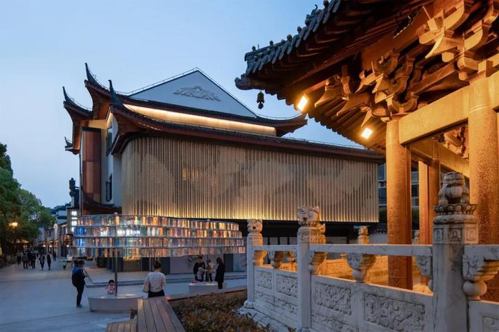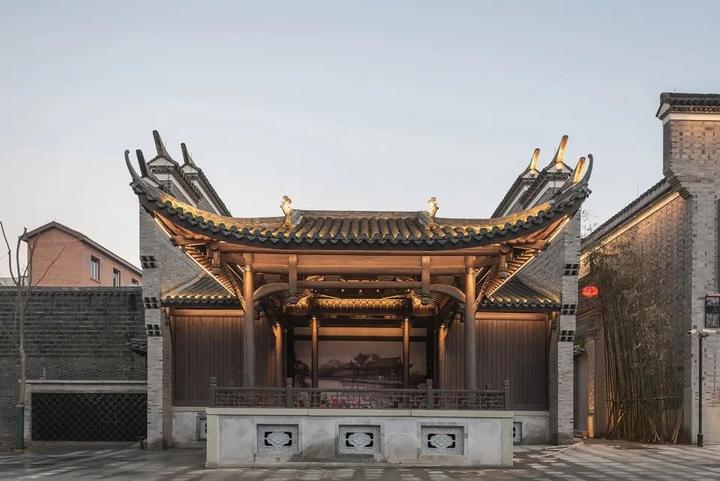 对南昌当地传统赣剧古戏台进行复建,用跟以前一样纯木构做法,复原了一个古色古香的戏台——木构赣剧戏台,作为商业广场聚集人群的活力舞台。