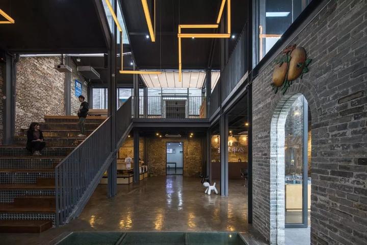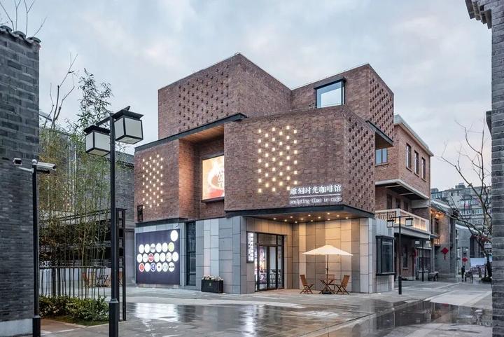 设计师从中提取了部分违章建筑的搭建手法和砖墙肌理元素应用在新的商业建筑上,建成后作为一个咖啡馆供人们休闲聚友,咖啡馆的名字也很贴合设计概念:雕刻时光。