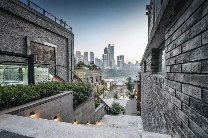 弹子石老街是全国首个以「开埠文化与城市九级坡地地貌」为主题获批的国家4A级旅游景区,地块最高和最低点之间相差80米,其独特的地貌为开拓过程带来了额外的挑战。面对挑战,设计规划并未选择将其铲平方便发展,反而顺应天然地势达成多平台布局的构思,将影响减至最低。