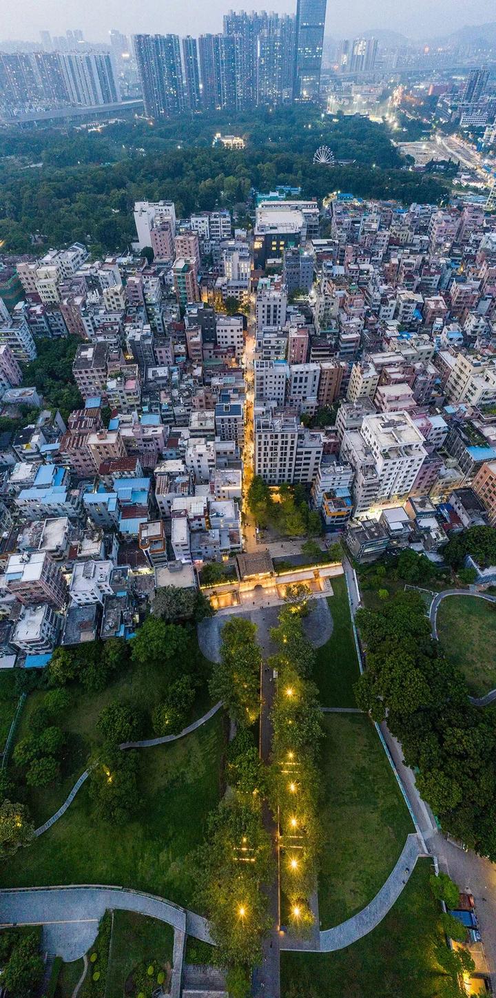 ▲焕然一新的南头古城 ©ACF域图视觉 以古城的南城门为界,城内与城外形成了鲜明的对比。城内是浓厚的市井气息、丰富的古城生活,城外是自然的公共空间,景色宜人的林荫大道;城内是具有厚重历史感的传统城中村,城外是光鲜亮丽的现代都市。