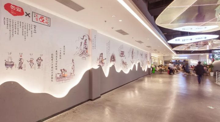 勿空街区是西安大悦城依托大雁塔玄奘文化的地缘优势,以《大话西游》电影为创作基础,通过赋予其具有本土特征的创意并以谐音命名,将在地性的独特元素融入了城市空间,创造出的特色鲜明的美食主题街区。