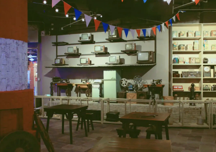 项目在场景上保留了老青岛市井的朴素风貌特征,红砖瓦、各种风情海报和很多熟悉的老青岛招牌,浓缩了青岛开埠100多年来各个时期的风貌和物件。