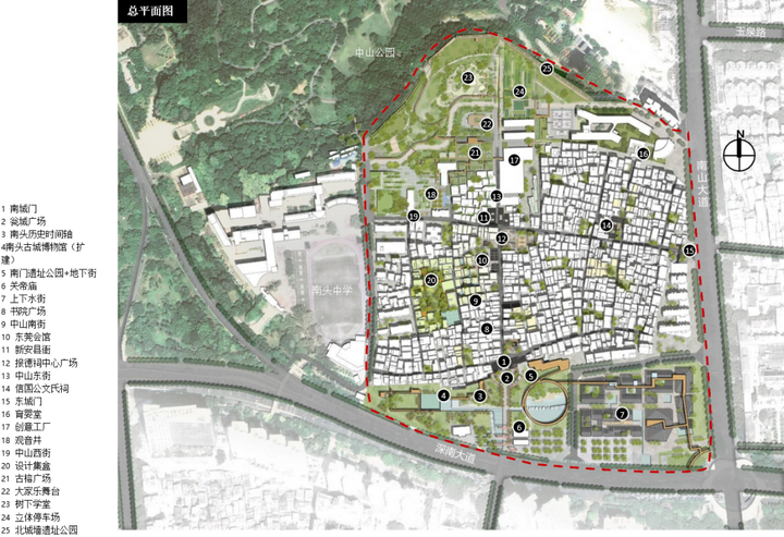 南头古城将作为深圳湾文化走廊与南山生 态休闲绿脉上的人文活力枢纽,其开放性 的公共空间、慢行系统将融合城市休闲网 络 。