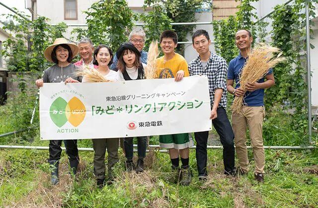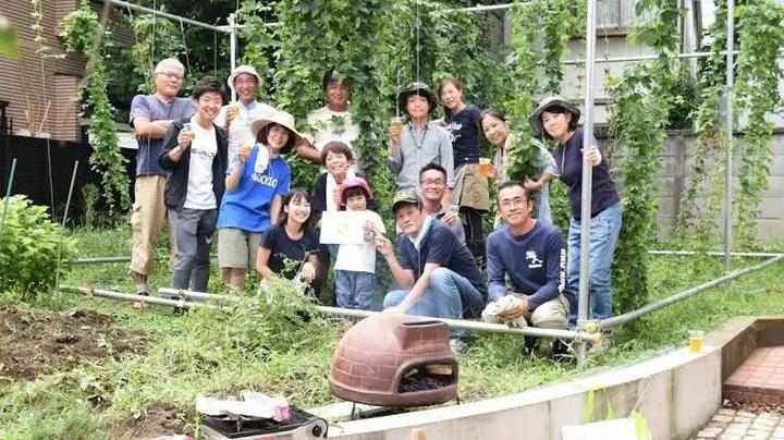 于是,她们开始尝试在本地一块小菜园种植蛇麻,也就是酿造啤酒所需要的啤酒花。但一块小菜地的产量不够怎么办?她们发起了世田谷区啤酒花计划,2015年向二子玉川居民和附近的世田谷区的其他地方的居民,分发了大约100株啤酒花的苗,请大家种植在自家阳台上,收获后统一交给她们拿去酿酒。参与种植的家庭,最后会获得啤酒作为回报。这个活动受到了很大的欢迎。2016年,分发的啤酒花苗一下子上涨到400棵。