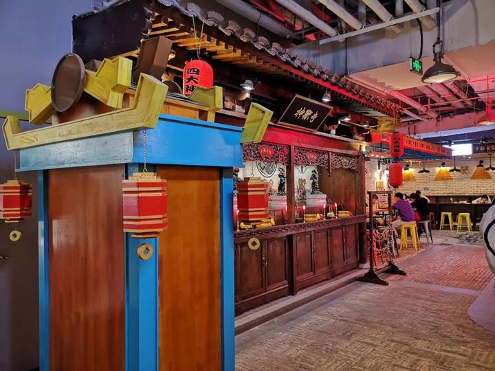 寺里可膜拜、祈愿、求签、拍照互动。传统地域文化与新潮文艺碰撞,成为骑鹅公社地标性景观。