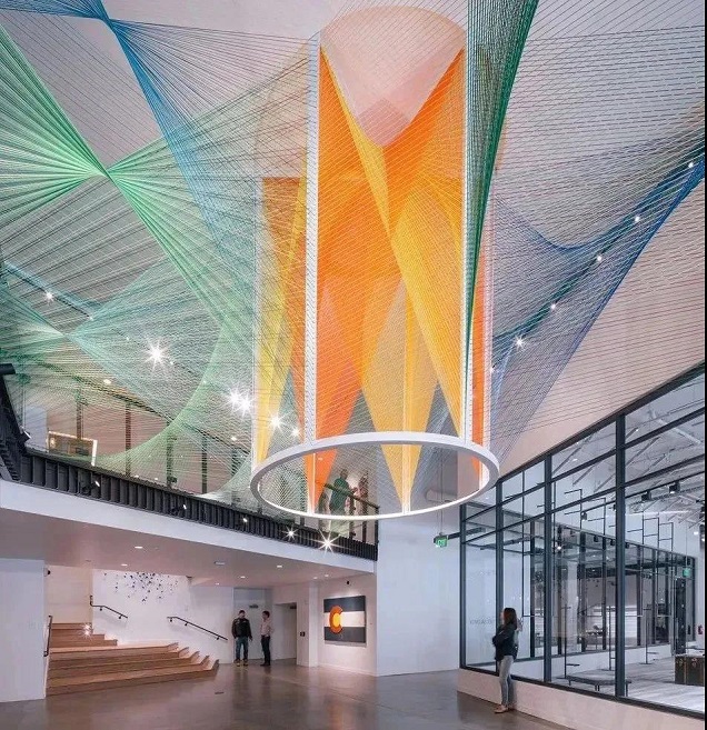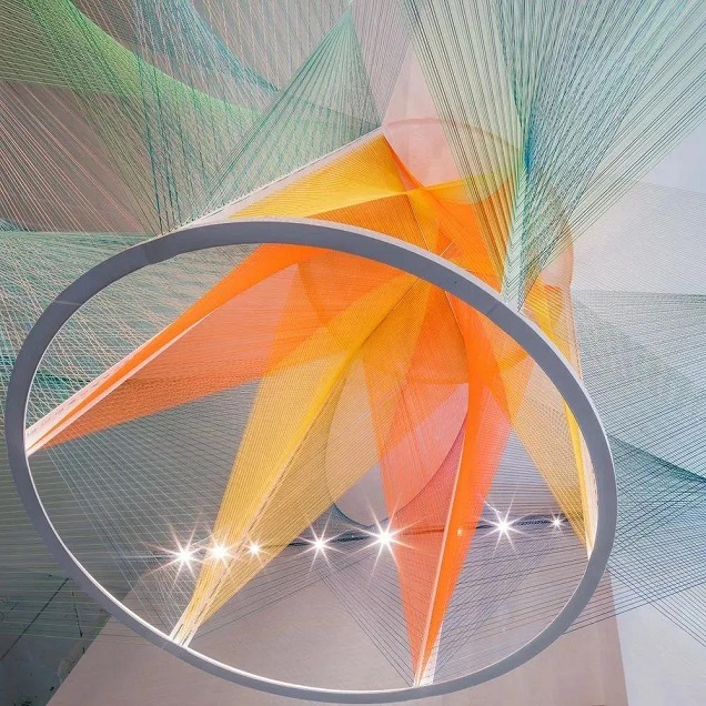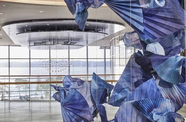 它既神秘又独特。悬挂高度13米,内置31个智能模块模仿海洋生物,并通过生动的颜色,褶皱和雕刻织物,印刷重新定义。设计和技术诀窍包括布景设计,对建筑空间的理解,材料的制作,褶皱的形成和图案的制作。
