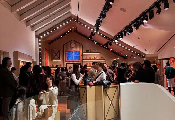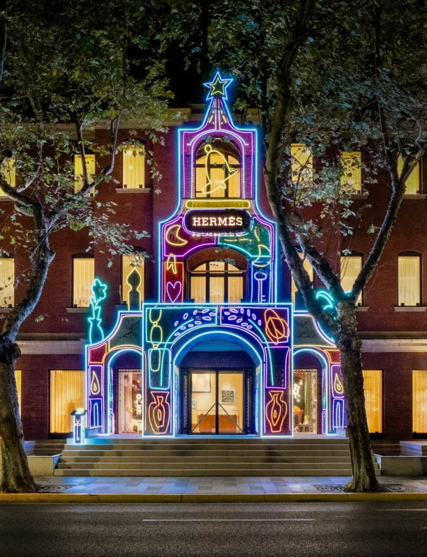 通过艺术展、节日亮灯装置,爱马仕之家把自己变成了淮海路上的文化地标。引入绘画、雕塑、装置艺术,吸引专属顾客前往门店。现在的消费者,越来越少为了“买东西”特意出门,但愿意为了“体验文化”专程前往。