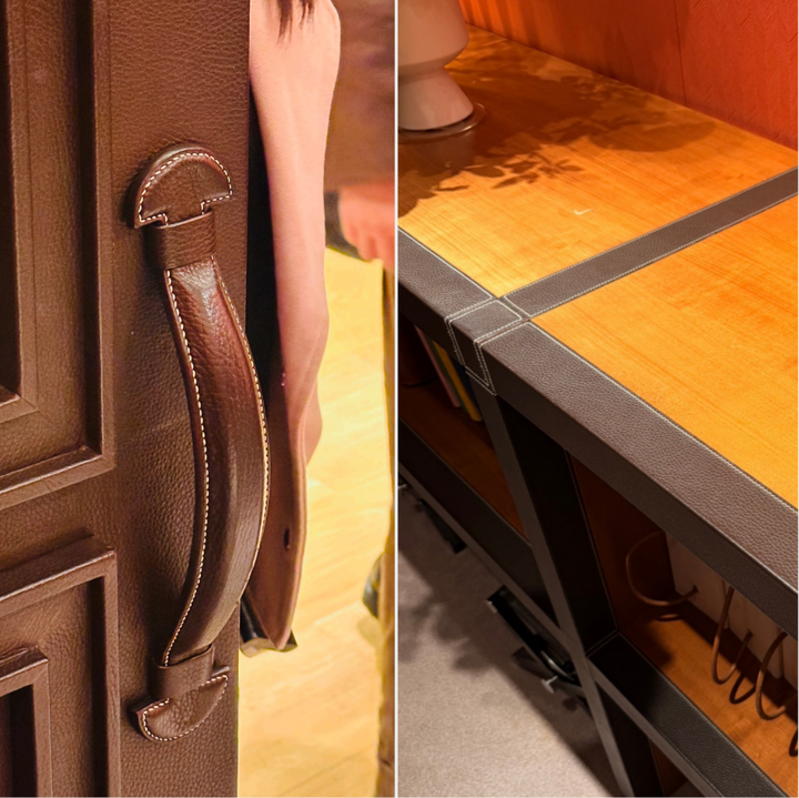 细节暗示:门把手等细节处嵌入了品牌核心工艺符号——Sellier 手工鞍缝。 这种设计让消费者产生“把这套生活带回家”的本能愿望,它服务的不再是单一产品的购买者,而是认同爱马仕生活方式的高净值客群。