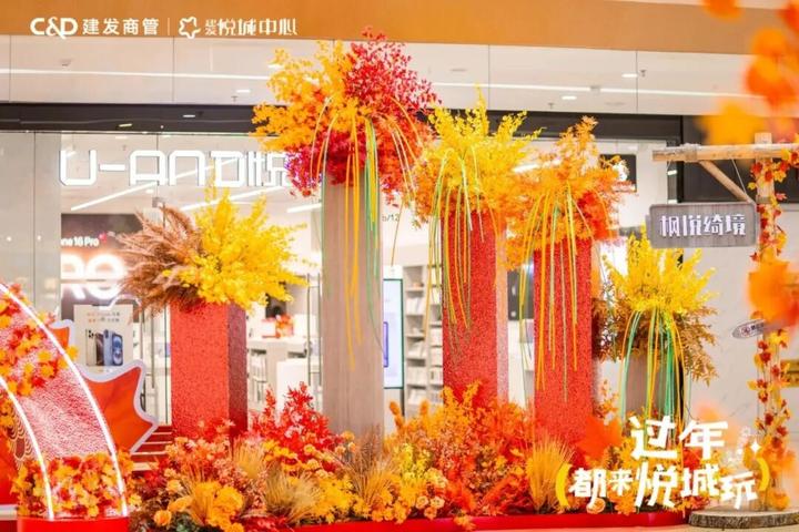 厦门“枫悦绮境”以秋日浪漫+在地文化为主题,融合“朱子故里”文脉与秋日风情,枫叶场景+非遗互动,邂逅秋日美好。红色透明快闪店,霓虹灯光环绕,花艺装饰点缀,户外桌椅营造舒适场景,吸引消费者参与。