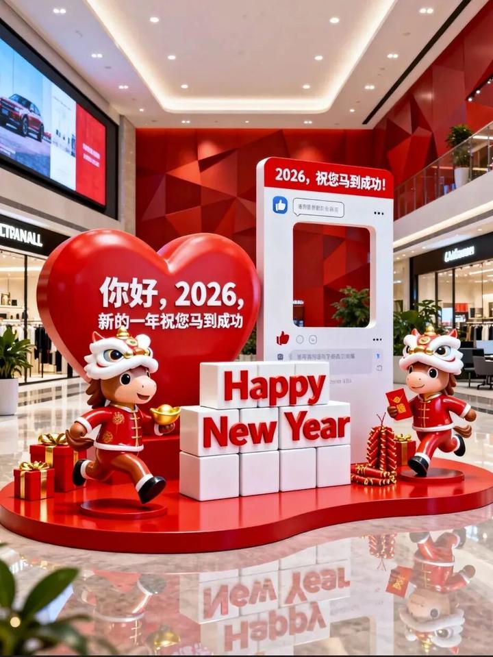 把“马到成功”视觉化、互动化,既符合新年氛围,又击中职场人求好运心理。喜庆中带现代感,谁能忍住不拍?