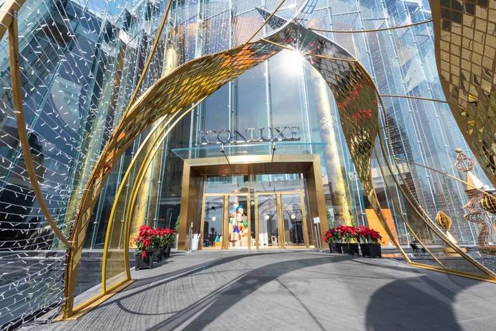 滨水部分商业是一个高奢的6星级购物中心(ICONLUXE),占地面积25,000平方米,与2栋公寓楼相通。整栋楼外观打造采用顶尖的超大超清玻璃,极具现代气息和豪华感,楼内汇聚国内外一线顶尖时尚潮流品牌。