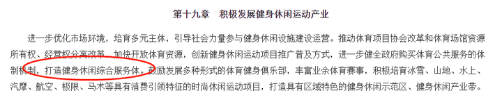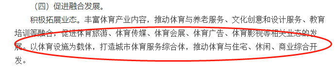 《国务院关于加快发展体育产业促进体育消费的若干意见》《健康中国2030规划纲要》中关于发展体育综合体的相关内容