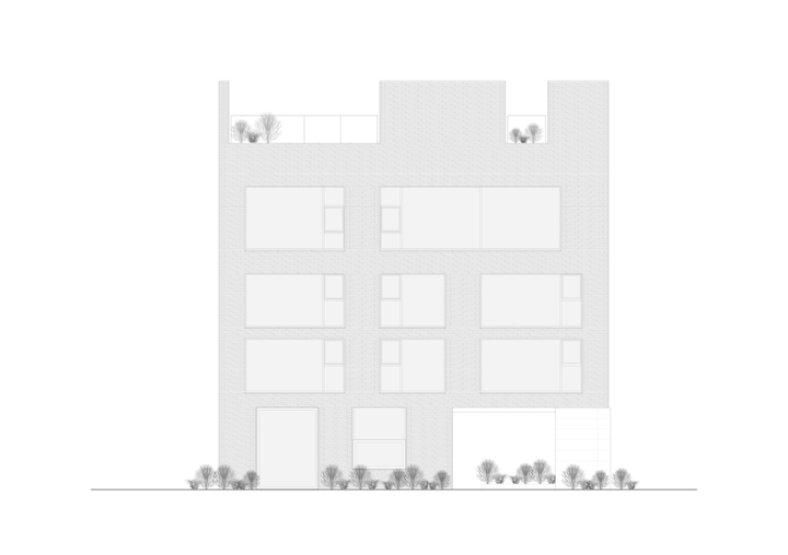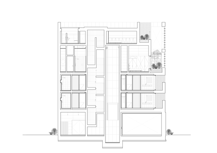 「Raw House」由开发商 Order Matter 打造。包含一间咖啡馆、几套住宅公寓以及一间兼作办公空间的顶层公寓,功能多元且布局精巧。