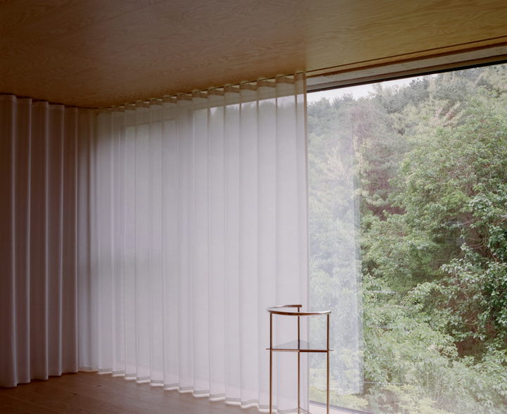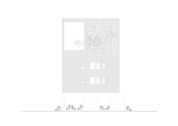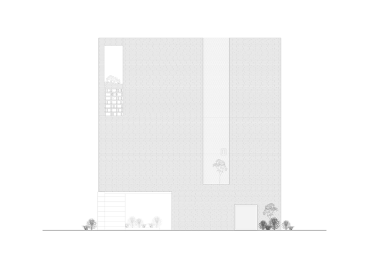 项目的建筑结构采用混凝土框架,展现出质朴而真实的美感。南立面设计上,大面积的玻璃窗将室外绿植引入视野,创造了开放、明亮的空间氛围,也让自然景观成为室内的一部分。相对而言,北立面则设计得更为内敛,通过简洁的线条和封闭的结构与街道形成缓冲,更好地保证了居住空间的私密性与安静。