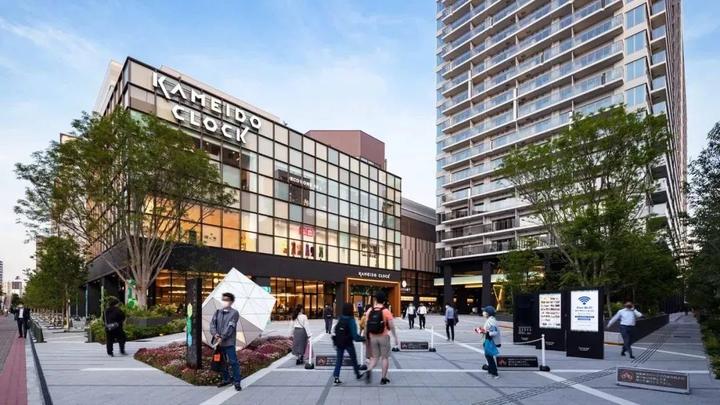 2022年4月,日本野村不动产在东京龟户推出社区型购物中心旗舰店KAMEIDO CLOCK,建筑面积5.8万㎡,其中店铺营业面积2.8万㎡。建筑共有5层,地上4层地下1层。整体设计以区域共生为主线,吸引各类商家入驻,解决龟户过去生活便利设施不足的问题,提高本地生活的便利性。预计年均来客数1200万人,销售额200亿日元。