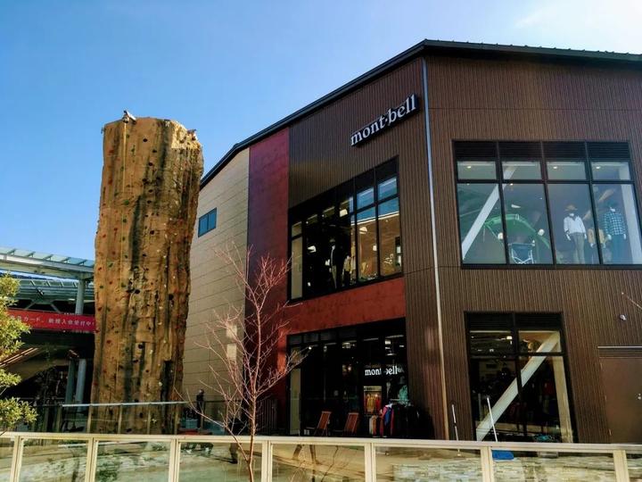 日本最大规模室外用品mont-bell店入口处高12米的攀岩柱