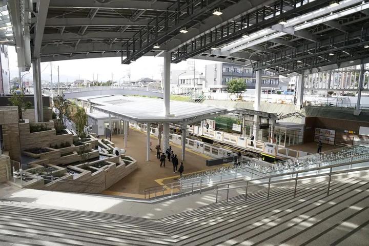 通过改造,车站设施被上方的大屋顶围合。从车站内就可以纵览周围的商业设施,形成了没有边界的车站的同时,实现了车站和商业的一体化,带来了极大的商机和人气。