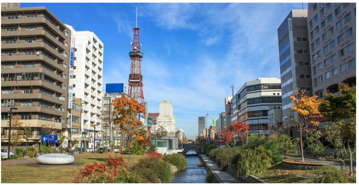 札幌,位于日本北海道道央地区,为全日本人口第五多的城市,也是日本的政令指定都市之一。札幌是日本知名的观光都市,其完美贯彻了生态发展的理念,整座城市都被绿色环绕,工业造品在这里与自然巧妙结合,构成了札幌独特的城市景观。札幌市最富盛名的景观是位于市中心的两条呈十字交叉形状的马路,其间洋槐遍布,还有各种不同的植株根据季节变化渐次开放。它们作为札幌市的城市中轴线,见证了札幌的发展和繁荣,引领着这个城市不断开拓生态发展的可能性。在实现创意生态中轴线建设的过程中,为世界城市建设带来了新的参考。