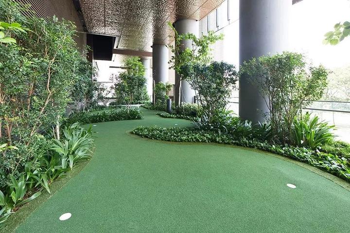 滨海盛景豪苑(Marina One Residences) 位于寸土如金的滨海湾新金融区,却奢华地创造了一片比足球场还大的绿色空间。德国著名建筑大师克里斯多夫.英恩霍文(Christoph Ingenhoven)将苑内和周围的景观完美糅合,为住户带来峇厘岛层层梯田概念的绿色园林、清新的蓝天碧海、繁华蓬勃的金融区和雄伟壮观的新加坡地标性建筑。“梯田形”中央绿地如峇厘岛层层梯田的独特设计,包围着大的绿色园林,走入园林凉风习习,还能聆听到高达13公尺的水帘传来的清新流水声。