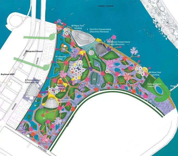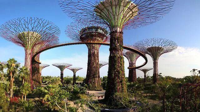 滨海湾花园是世界上最大的室内植物园,也是人类最大的景观工程之一,是新加坡的标志性景点,由滨海南花园、滨海东花园和滨海中花园三个风格各异的水岸花园连接而成。令人惊叹的建筑结构,各式各样的园艺,每天光及声音表演,湖泊,森林,活动空间和一系列的餐饮和零售产品。整个项目有一个智能的环境基础设施建设,让濒危植物能在新加坡蓬勃发展,向群众提供休闲和娱乐的地方。