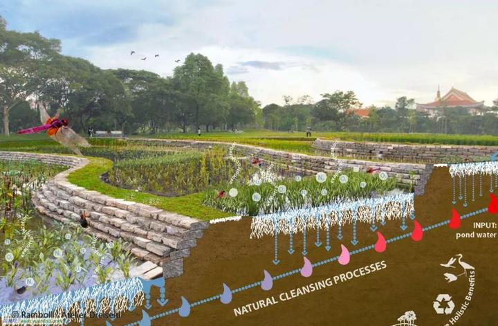 最能彰显该创新项目的就是在将混凝土水渠改建成为自然河道的同时,融入了雨水管理设计。这为城市的发展提供了无限可能,比如在管理河流和雨水、自然与城市相结合、提供市民休息娱乐场所等方面。城市的韧性需要增强,因为气候变化容易导致洪灾,而干旱期则极大地影响了城市发展。这个创新项目的一体化概念能够帮助新加坡等城市更好地面对未来的挑战。它能够有效地对于雨水进行处理、有助于净化市民的饮用水;能让植物和动物种群回归城市;它还能够为市民创造更多娱乐休闲的场所,并提供更多亲近大自然的机会。