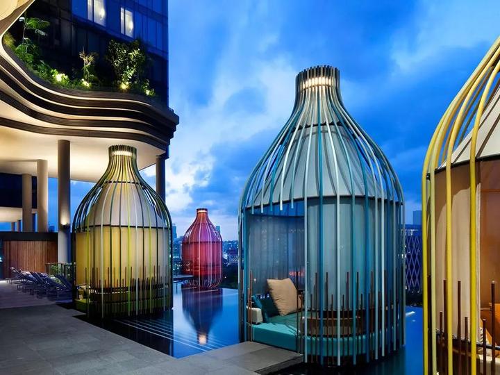 座落于新加坡市中心的皮克林宾乐雅凭藉其创新的花园酒店概念及多样化节能设计备受赞扬,酒店用恰当的体量和无处不在的绿色,对错综复杂的新加坡城市做出了优雅的回应,成为周围环境中的一个耀眼存在,如此繁荣茂盛的绿色与周边临近公园连成一气,形成连续的绿色景观。