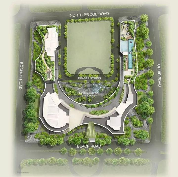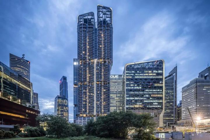 项目位于新加坡市中心的滨海区和市政区之间,涵盖了整个城市街区。同时把新建筑与现有经过翻修后的建筑和多功能建筑相结合,形成了一个高效节能,包含了商店、咖啡馆、餐厅、一个酒店和公共空间的,将生活和工作结合在一起的新城市街区,两个空中花园由法国知名设计师菲利普·斯塔克设计。