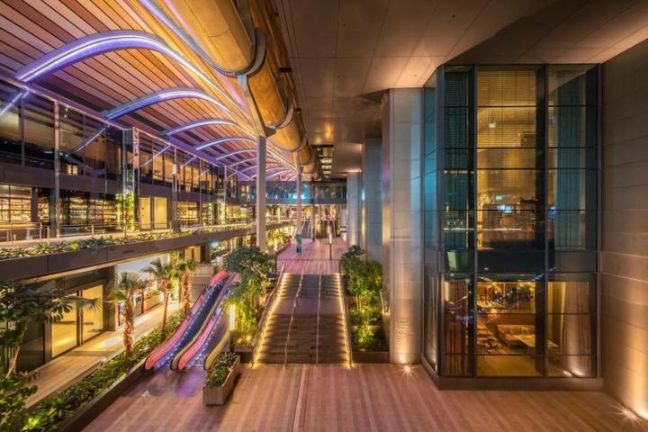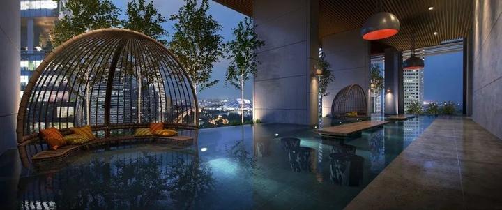 珊顿·云尚的设计师从自然中获取灵感,结合五行元素的设计概念,巧妙运用源于大自然中鲜明形象与丰富结构,让建筑物宛如大自然的鬼斧神工,成功打造属于新时代的大都会高品质生活。设计师巧夺天工地把立体空间、彩色光条、绿色植被融合在一起,创造出自然生态和谐的建筑。