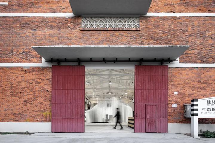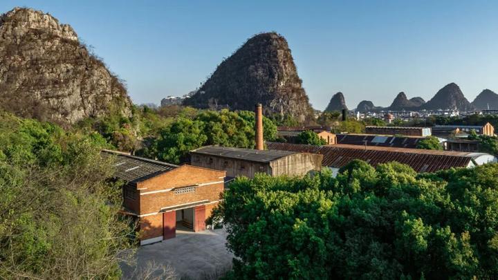 叠彩生态旅游新城展厅原始建筑为铁道部门的红砖厂房,在群山与丛林掩映中静守着。