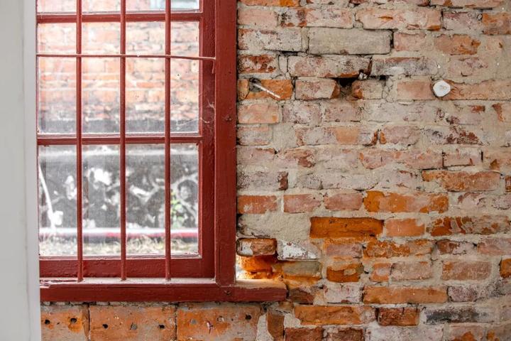 展厅内剥脱处理后的红砖内墙不加粉饰,袒露出岁月的粗糙肌理。