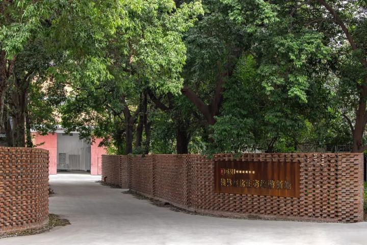 两道间错垒砌的红砖矮墙将步道两旁的绿意归拢,以充满自然生机的仪式感将造访者引向入口。