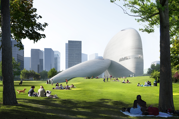马岩松:“在现代大城市和自然之间的场地建一座文化地标,她首先应该是一个自由的市民空间,像大地艺术公园一样的场所,其次才是作为建筑的展馆功能。”