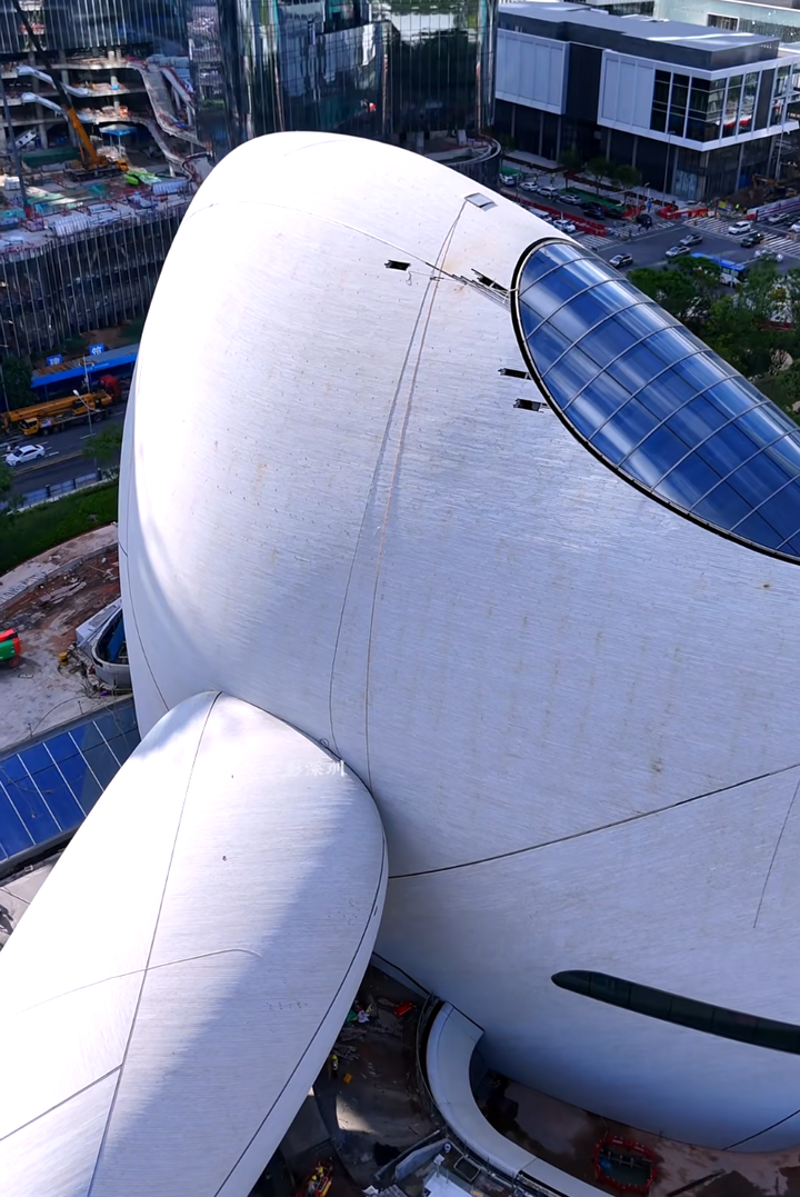 深圳湾文化广场是深圳市耗资33亿打造的“新时代十大文化设施”之一,由MAD建筑事务所设计。项目位于南山区后海中心区,总建筑面积约18.8万平方米,包含深圳创意设计馆(北馆)和深圳科技生活馆(南馆)两大主体建筑。