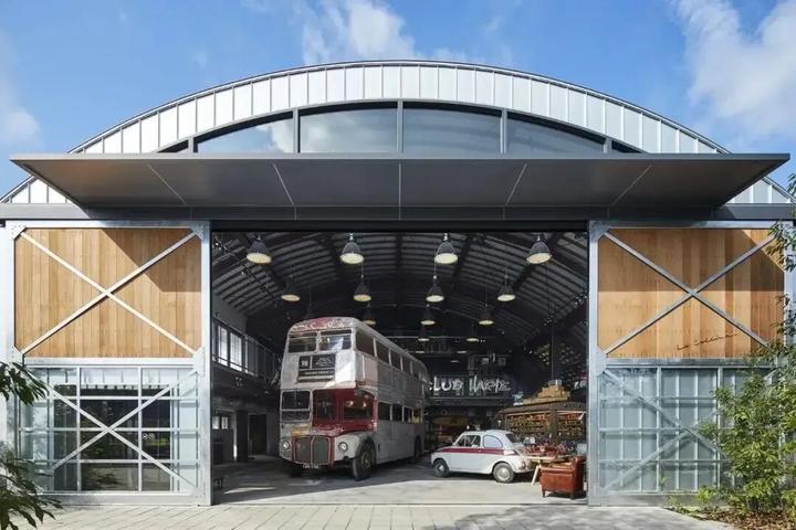 4.草回廊(Grass Corridor):环形空间串联各建筑,兼具“观景台” 与 “露天剧场” 功能;内设 “车库主题商店”,展示英式巴士、雪铁龙 H 卡车等复古车型,搭配各地车牌营造怀旧氛围 。