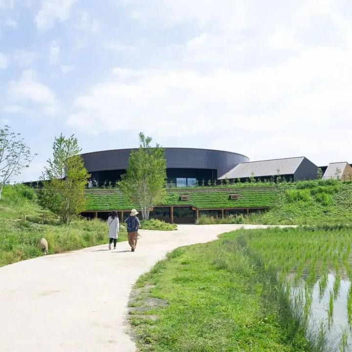 园区以“稻田” 为核心,建筑如 “从土地中自然生长”,无严格功能分区,设施散落分布(如有机农田、生态绿地、巴士商店、美食广场),引导游客 “漫步中发现惊喜”: