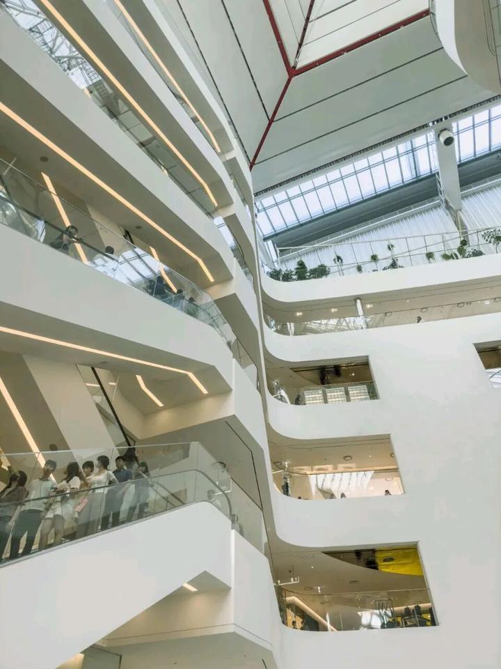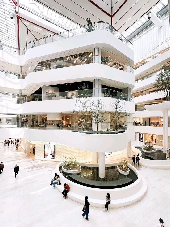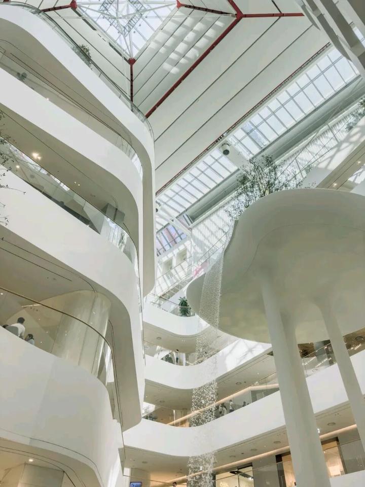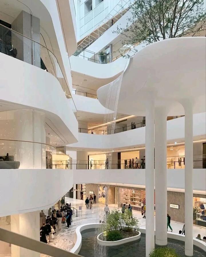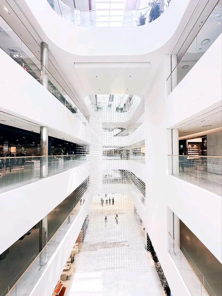 流线型材料和造型的运用最高处达12米!打造地域标志性,将Neo White的明亮白色作为购物中心的基本色调【流动的形体既是造型也是艺术装置】。