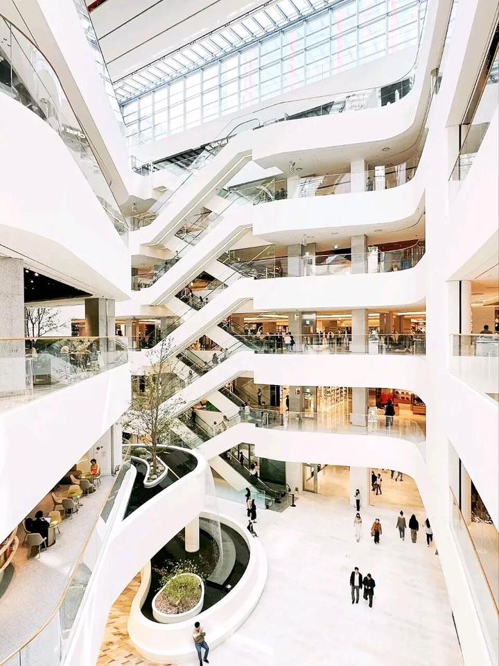 营业面积仅占建筑面积的5成。牺牲如此多的面积,就是为了增强体验感。你可以坐在拥有12米高度差的人工瀑布旁边,在炎热的夏日感受清凉。也可以在五楼的3300平米的“Sound & FOREST”,边喝咖啡边享受片刻的宁静。种种崭新的面貌,被媒体推崇为“首尔百货公司的未来”!